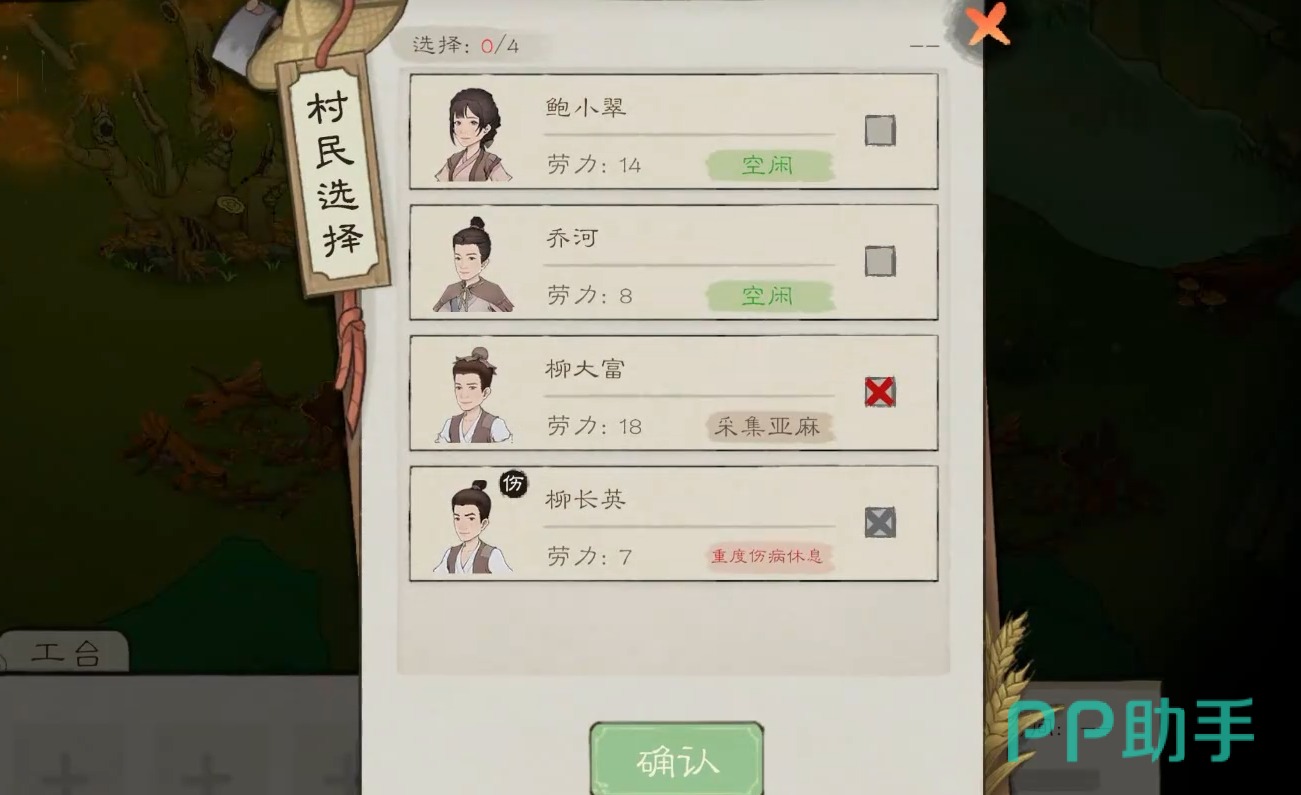选择完毕,大家将看到所需材料的具体数量。通常情况下,工台的制作需要12根木材。确保木材数量充足后,大家可以点击并勾选以选择负责建造的村民。为了提高建造效率,建议大家选择足够数量的村民参与工作。一般来说,参与建造的村民越多,效率越高。
