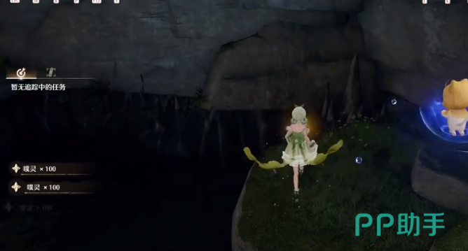 花园的位置正是在右上角的山洞,在进入之后往前走,眼前就可以看到有三个噗灵处,沿着左边的小路来到墙壁交互的地方,就可以获得灵感露珠。接下来可以选择跳上平台,如果觉得很难跳的话,也可以先助跑,然后跳到左边的平台。
