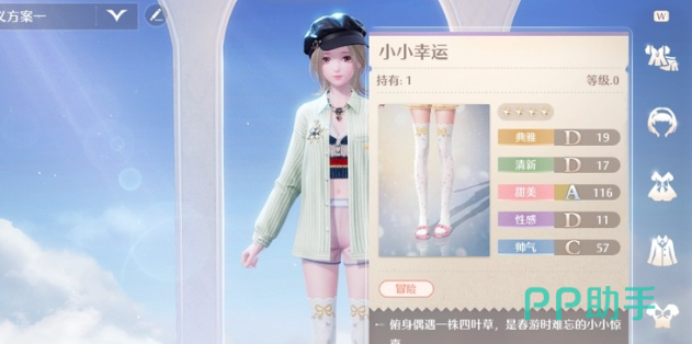 可是很多玩家都会卡在这里,幸运属性的袜子在游戏的前期小伙伴们如果没有大量的氪金抽取服装基本上是获取不到的。这里小编给出的解决方案是来到马尔克斯的商店,寻找里面带有幸运的服装。在商店里面只有【小小幸运】袜子符合玩家的要求。