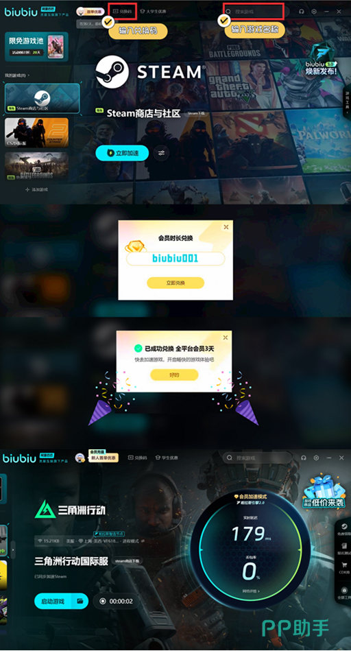 想下载游戏的玩家人数很多,不过一款国际服的游戏在下载时对网络有限制,担心网络卡顿可以用网络加速器。现在还可以免费领取加速时长,新用户可以享受叠加福利,1:在注册之后就可以领取24小时免费,2:是在页面上输入【biubiu001】可以免费72小时,另外两种福利可以一起搭配,一共是96小时。