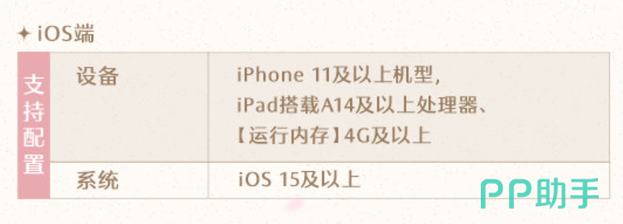 苹果版本最低的要求,是至少是苹果11以上的手机才能够带动,在一些基础的存储和运行空间上都是和安卓差不多的。如果玩家的手机满足以上的机型和配置的话,就要注意的就是内存问题,因为该款游戏真的很占内存。