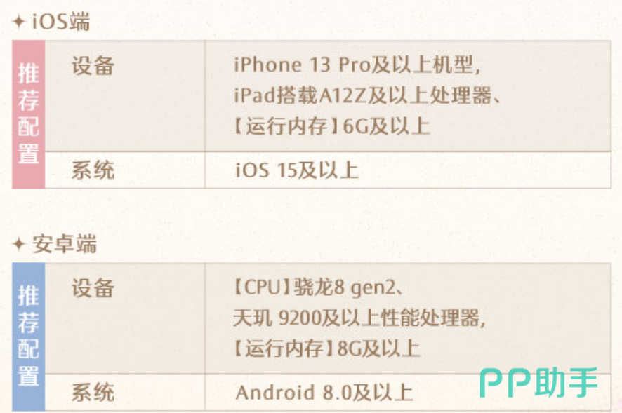 存储空间的话大概要预留个20g到30g左右,因为该款游戏所占的内存包还是比较大的,游戏资源就占的比较多。所以手机端对于玩家手机的配置要求还是比较高,这是最低的配置要求,不然很容易闪退、发烫卡机、死机等各种问题,大家也得不到良好的游戏体验。