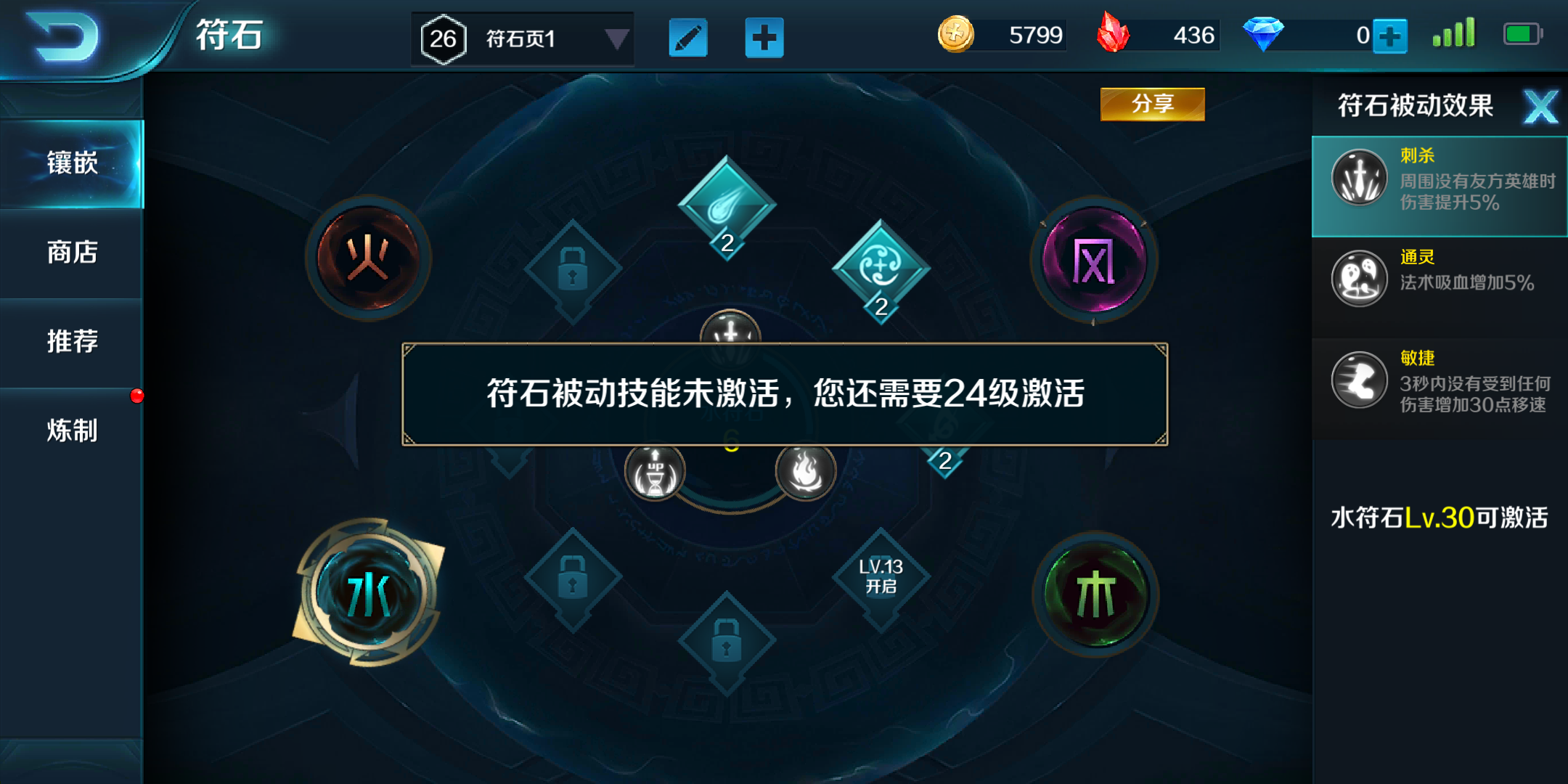 曹操的火、风属性符石主要选择法术穿透、法术吸血和冷却缩减,水、木属性符石主要选择魔法抗性、移动速度和魔法恢复。天赋方面点出狂暴,可增加对小兵和野怪伤害,另外点出敏捷,帮助曹操快速回到线上。