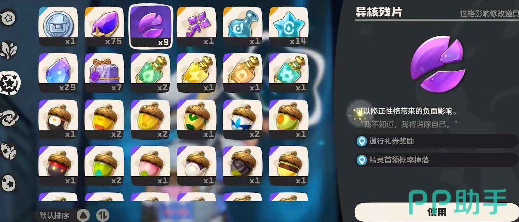 待玩家们确定好一队主力精灵后,可着手进行精灵养成方面的事宜。在这过程除了给精灵提高等级,让它实现进化外,还要注意用异核碎片调整精灵的负面性格。该道具可通过刷精灵首领来获取,也可利用通行礼券拿到,需求量非常大,很值得去积攒。
