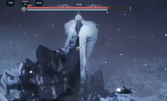 玩家在起初进入副本的时候,所遇到的郑鄂其实还不算是特别的强,因为这个时候的郑鄂还维持在是人的状态,使用长枪所打出来的远距离攻击,也不是特别的难防,玩家只需要找准时机去进行躲避和格挡,然后伺机翻滚接近他后,全力的去对他进行输出就可以了。