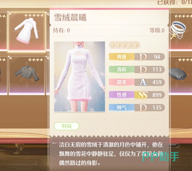 里面的五星装扮包含了性感度比较高,甜美度比较高以及典雅度比较高的时装配饰,而且其中的毛衣裙雪绒晨曦也是一个颜值不错的装扮,还是值得大家入坑去抽的。