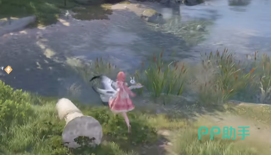 那么来看这天鹅,游戏中天鹅只会在一个位置出现,该位置位于微风绿野的中间位置,如果大家是才解锁微风绿野的话,那就是从钓鱼协会出发,这里建议大家去租一辆自行车,随后骑着自行车沿着右手边的河道骑。