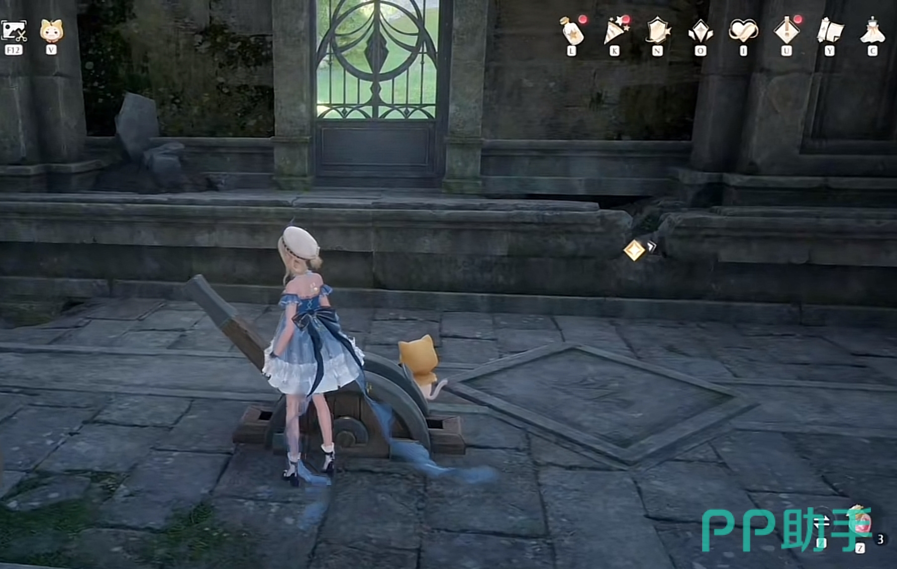 而在广场附近也有一个可以激活的传送点,大部分是在剧情过完之后就可以顺带激活的。到达广场中央之后朝左侧开始跑,来到一片落叶堆之后再朝左走,能够看到小路就说明位置对了。接着跟金币的指引跳上废墟,进入这栋建筑从外面的楼梯开始向上走,就能够看到广场最近秘密基地传送点了。