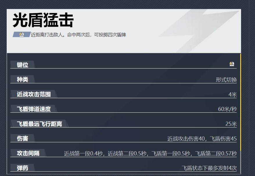 如何能够快速上手一个角色,肯定是要对他的技能了如指掌了,我们都知道美队是有一个用振金属制作成的盾牌,平时也主要用它进行进攻。所以左键普攻就是光盾猛击了,近距离命中敌人两次之后,就可以投掷4次盾牌了。如果身体在半空中,使用左键就是神兵天降,落地将敌人击飞。