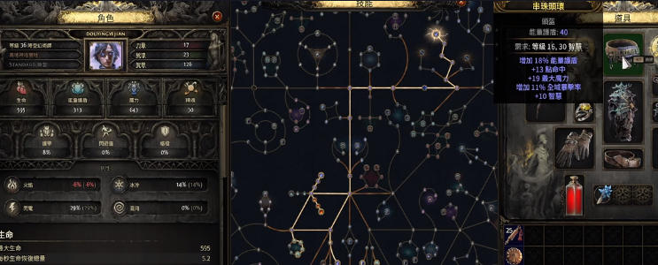 在武器方面尽可能选择法术伤害的装备,例如可以选择剧痛圣棒能有效增加闪电伤害又或者是法术伤害,别忘记还需要提升技能时的等级。在防具方面尽可能选择能量护盾或者是和生命对应的元素抗性,可以选择串珠项链,增加魔力的恢复几率。选择增加生命值的黄玉戒指,选择提升能量护盾的合金手套。