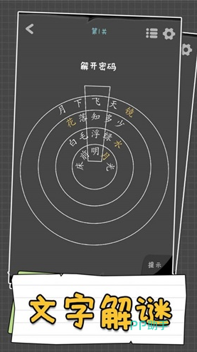 玩家能体会到汉字构造的无穷魅力,每一关都有一句简短的话作为线索,玩家得从十几个字里面,挑出最符合这句话意思的那个字。游戏里头的汉字多半和题目有点关系,得动动脑子,找出联系最紧密的那个字。过关后才可以解锁下一关,继续享受汉字猜谜的乐趣。在游戏中不断挑战自己,增长自己的汉字知识。