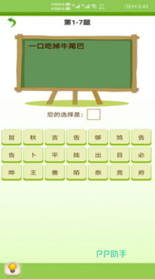 一款特别有趣的猜谜小游戏,玩的时候玩家得从四个选项里挑出正确答案,答对了就可以赢,游戏还提供了一些提示帮玩家过关。画面非常可爱,场景也比较清新。每过一关玩家就能拿到奖励,这些奖励可以用来换提示。一边玩一边学,可以认识好多新成语,还能知道成语背后的有趣故事。关卡特别多,一层一层地挑战,越到后面越有挑战性。