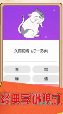 既好玩又能学汉字的小游戏,特别适合动脑筋的朋友。它的玩法非常新颖,关卡设计也比较多样,让大家在玩乐中还能学到新知识。游戏里有好多关卡,玩家得不断动脑筋,享受那种解开谜题的快乐。每天挑战一下会发现认识的汉字越来越多。有许多谜题等着玩家去解,每个谜题都有时间限制,所以玩家得好好想想,选出最正确的答案。游戏有很多谜题关卡,每个汉字背后都有个小故事。