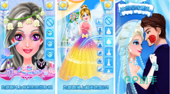 冰雪皇家婚礼即将开始,这样的盛世婚礼由你来操控,为了举办好这场盛会,将给公主设计漂亮的婚纱以及妆容为新娘画上惊艳的冰雪妆容,利用你的聪明才智及独到眼光布置场景设置蛋糕,让整个婚礼现场空前绝后,让所有人共同感受举国上下的皇家盛典。此游戏受到很多小朋友的喜爱,从丰富的化妆工具美甲工具等你来选择并自由创造妆容。
