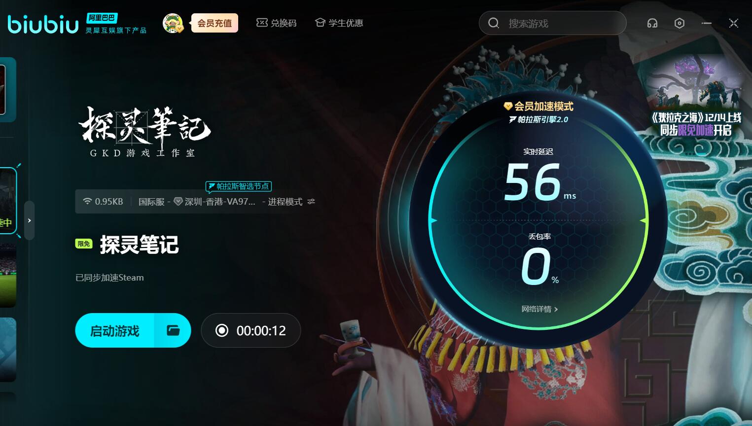 新引擎的引入,使得游戏内的场景更为逼真,大家可以沉浸式地游玩其中的内容,搭配上丰富的道具系统,使得对战过程充满了未知。在游玩探灵笔记的时候,全程都要联网,期间你的网络要是波动太大,那么在比赛中很难发挥出自己的真实水平,使用biubiu加速器中的专线服务,就能为了构建一个舒适的游戏环境,而且软件的使用方法也很简单,降低了使用门槛,在成为正式会员前,你还能以新用户的身份,免费试用24小时,此外,每一名用户在输入兑换码【biubiu不卡顿】之后,都能领到3天的试用时长,经过这段时间的试用,你就清楚这个产品的效果了,要是用起来感觉还不错,那么不妨成为正式会员,之后就能一直享受优质的加速服务了。