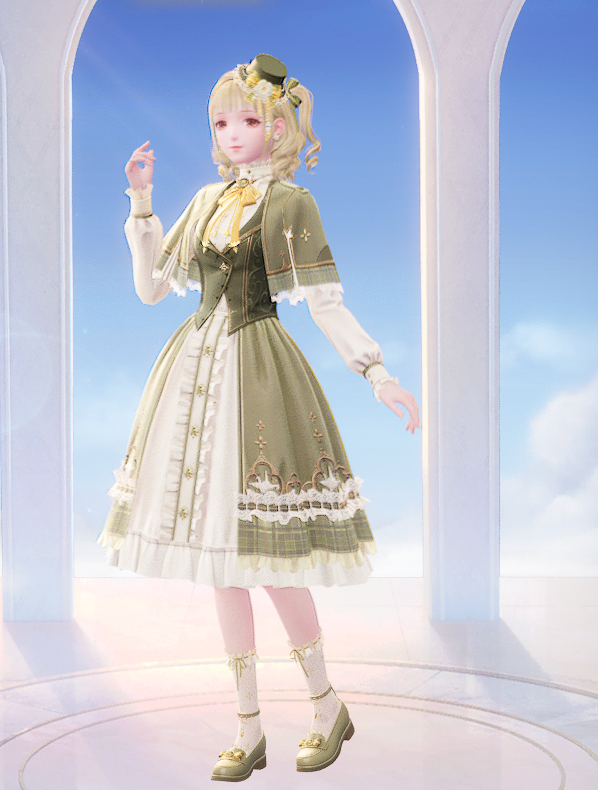 祈愿新生是一套非常清新的服装,这套衣服的风格属于学院风风格,穿上它以后会让暖暖看起来既充满着学生气息,同时还给人一种极为清新的感觉,祈愿新生这套衣服采用了长裙的设计灵感,衣服整体以绿色作为主要的颜色,裙子上以及袖子上面还加入了奶白色,代表着清新的绿色以及纯洁的白色混合在一起令服装显得相得益彰,穿上后既有学生的俏皮感,又有大家闺秀的温婉感,让人不会觉得衣服单调。