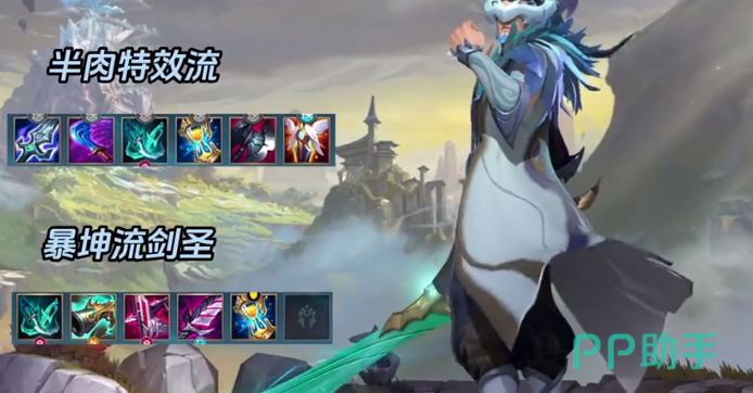 目前为止,游戏中关于这个角色的介绍并不多,但是玩家可以参考之前的游戏。如果是想打造半肉特效流的剑圣,应该选择增加伤害效果的破败。另外选择可以提升魔法抗性的智慧末刃。如果控制比较多就可以选择水银鞋,相反控制比较少的情况就可以选择板甲鞋。