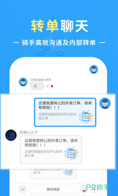 结合智能调度与精准定位,优化配送路径和时效,强调用户体验,特别适合中小企业的日常配送需求,提供定制化服务。还有转单聊天,提供骑手高效沟通及内部转单。