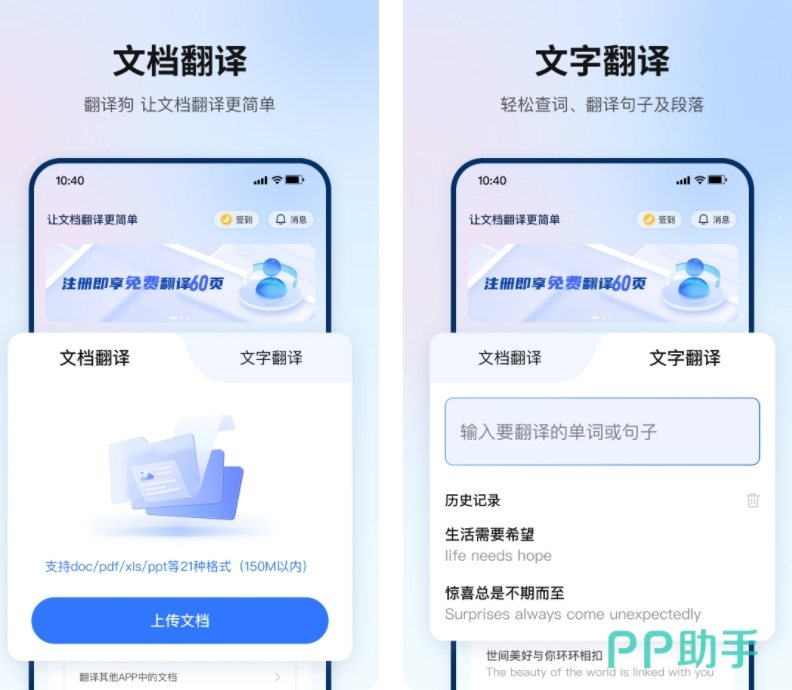 它是一款功能丰富的翻译神器,集多种译法于一身,支持文本、语音、图片等多种方式。其独特的翻译算法,可以确保刷出的结果更为自然,大家也可以直接传文档转译文。
