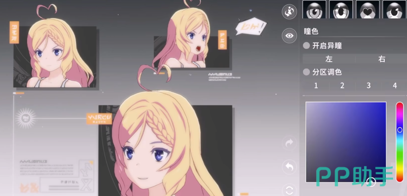 接着就是眼睛的颜色,并且何时我们也想拥有红发碧眼。在这就能自由更改自己的眼瞳颜色,仿佛带上了一个美瞳。甚至你可以开启异瞳效果,让自己的眼睛变得与众不同。然后还可以选择脸型、嘴巴,甚至是睫毛牙齿这种细微的地方,都能按心意调节。