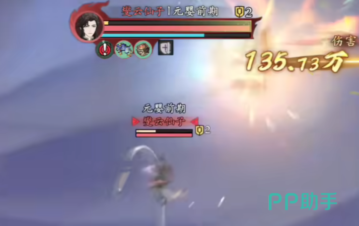 燮云仙子是一个非常难缠的boss,他在一开局就会给自己加一个护盾的神通。所以我们前期最好先用破盾的法术或者符箓去对付他,不然高达60万厚度的护盾。光靠普通攻击或者其他技能慢慢消耗的话,会极其浪费时间和资源。