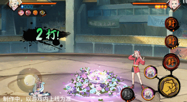 她的第一个技能短按的话会向前方丢出一束会爆炸的花束,长按的话则会向后方跳跃,将爆炸花扔到更远的地方,长按适应后还会解锁一个特殊技能,点击能直接引爆场地上的所有花,无论是否已经绽放都可以引爆,小伙伴们在一技能的后摇阶段点击普攻还能释放一段特殊攻击,向前突进并追击。