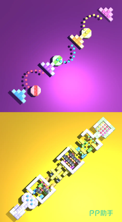 当玩家遭遇到了小球碰撞的空档期,则可以通过刷新小球位置的方式,来更快的收集边角处的宝石,游戏内也有许多机型的地图需要玩家挑战,由于机型地图不受重力的控制,玩家必须使得自己的小球处于弹跳的状态,否则是无法将小球抛掷到理应存在的位点的,此时玩家可以通过探针的方案,来找寻正确的抛物地点。