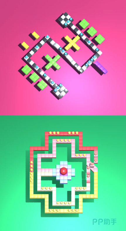 游戏后期容易出现的关卡地图一般为菱形、多边形的地图模式,而在这些地图当中,会嵌套许多可供玩家移动的位点,此时玩家可以率先地让中间的小球运转起来,随后通过连携反应,将附近的小球都带动,这样可以更高效的一次性击碎墙壁。