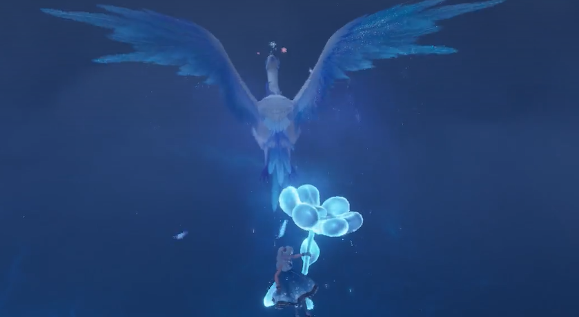 完成清洁后,天星之羽会作为奖励直接送到你的背包中。接下来,换上滑翔套装,来到天鹅的附近。此时,按下右键触发隐藏剧情,一段梦幻的PV动画就会播放,暖暖将化身星空中的翱翔者,与巡星天鹅一同飞跃天际。画面太美容易错过关键时刻,建议切换到拍照模式,记录这令人难忘的瞬间。