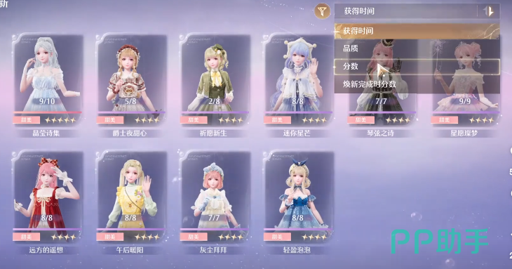 玩家可以进入到服装换新的界面,然后把所有的服装全部都升级到5级,另外连满电行动的袜子和护目镜也需要升级到5。点击右上角的筛选,选择甜美的风格,选择分数比较高的时装。
