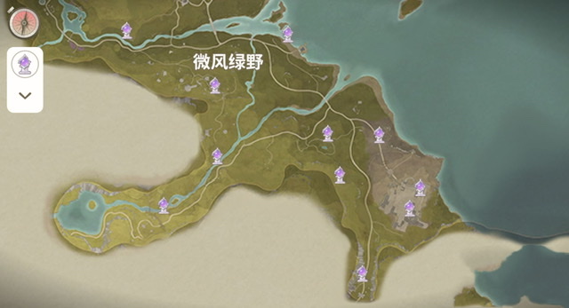 除采风基地门口外,微风绿野有几处地方值得一探究竟,各有一番风味。例如遗迹山坡边的洞窟,是宝藏集中的地方。由遗迹山坡上的传送点处进入洞窟并沿路径进行深入调查可发现许多宝箱与露珠。这些洞窟设计得颇为精巧,线路可能有些岔路要走,要想获得暗藏的报酬,就必须对周围的环境进行观察,或化解小机关。