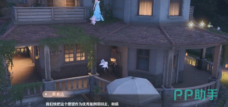 调整完时间后,大家需要前往任务地点花愿镇,这个任务的npc是诺诺伊,大家只要在花园真的地图上找到诺诺伊的家传送过去,就直接到诺诺伊家门口了,到了诺诺伊加走到房门另一侧的走廊处找到可艾玻和索索达这两只小精灵,分别点击它们对话。