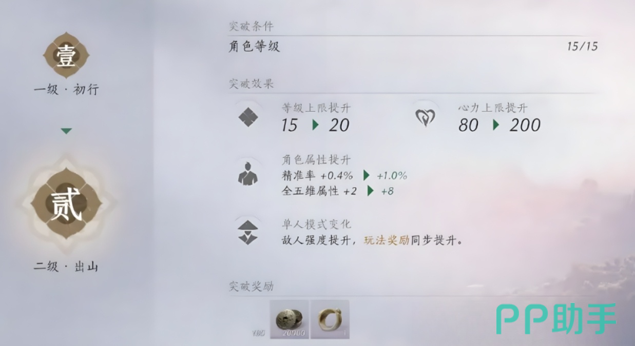 在《燕云十六声》中,角色等级突破并不是一蹴而就的,而是需要触发突破任务。通常,这些阶段包括15级、20级、40级等。当角色达到这些等级时,游戏会自动提示玩家可以进行等级突破。突破条件不仅包括等级要求,还包括一些前置任务的完成。一旦达到突破条件,玩家需要根据任务提示前往指定的突破地点。
