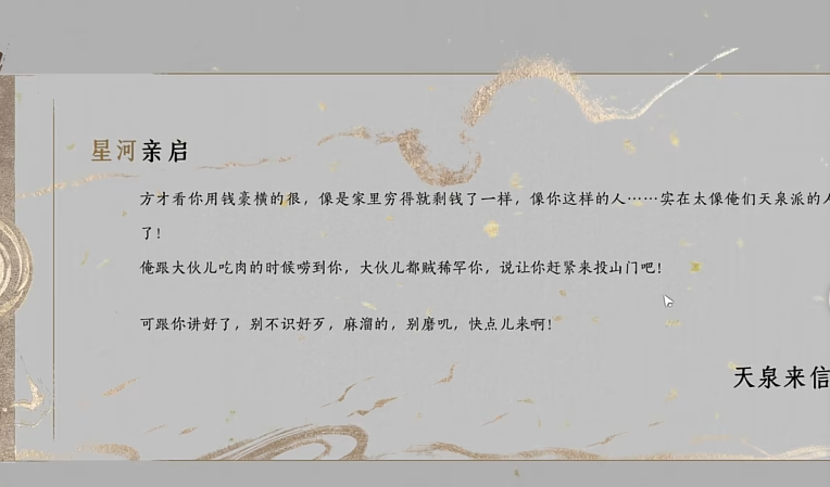 想要加入天泉门派,玩家需要先完成一定的前置任务。首先,需要砍杀2名九流门派的人员,以展示自己的实力和决心。接着,打开地图,前往丰禾村,寻找NPC张一豪。张一豪通常会在大树底下出现,找到他后与其对话,即可申请加入天泉门派。经过一系列简单的考验和对话,玩家就能正式成为天泉门派的一员了。
