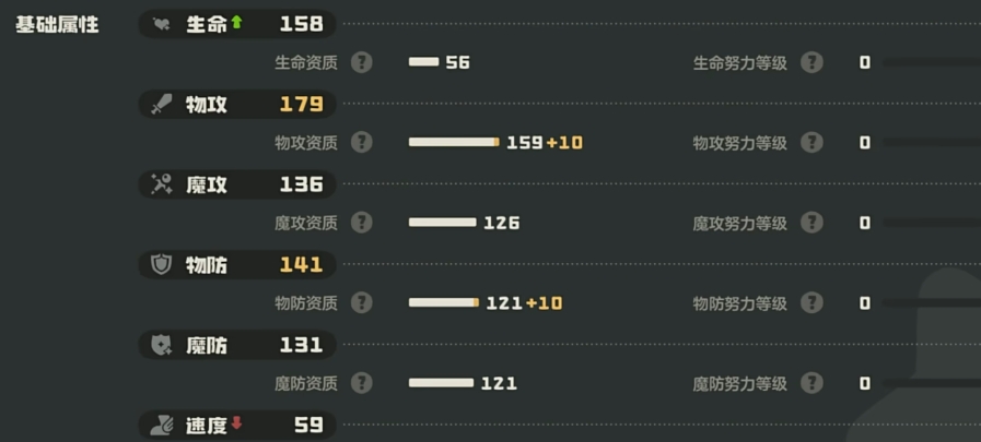 而像孤僻、勇敢、固执这样的性格则分别提供了不同程度的物理攻击力加成,尽管它们可能会以牺牲其他某些方面的能力作为代价,除此之外调皮性格能让精灵在提高物攻的同时降低魔抗,大胆、悠闲、淘气以及无虑等性格则各自专注于强化物理防御力,但同样需要面对相应的减益效果,胆小的宠物虽然能以更快的速度行动,但这种速度的提升是以牺牲部分物理攻击力为代价的。