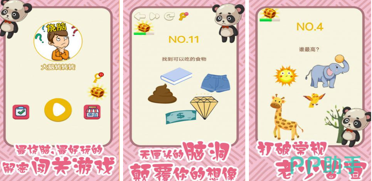 大脑转转转是个内容休闲有趣的脑洞解密类型闯关佳作,脑洞大开的各种充满挑战性的玩法老少皆宜,考验大脑的闯关机制结合精心设计的关卡更让大家耳目一新,多道烧脑的关卡难度循序渐进让高智商的玩家乐在其中,竖屏的操作方式游玩更加方便快捷,简约的美术表现和休闲畅快的氛围吸粉无数。