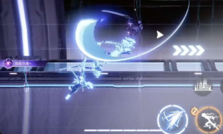 二技能的话就非常帅气了,他的刀底瞬间会发出一道亮光。自己就会向前冲刺,并且让刀器回旋劈砍。并发动剑气,把对方打飞。落地之后还会向下攻击,并且让周围都充斥着大量剑气,对周遭的敌人造成大量伤害。优点就是没有命中判定,只需要用出来之后就能完成所有的连击。