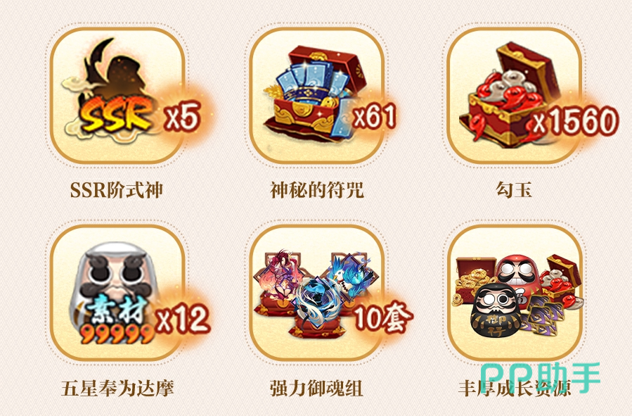 本次的联动拥有着联动关卡,玩家们在通过关卡之后可以获取到不少联动的转水货币,这些货币可以兑换很多实用的物品,这其中便包括联动的印花,御行达摩,各类SSR或者SP式神的召唤卷等等。