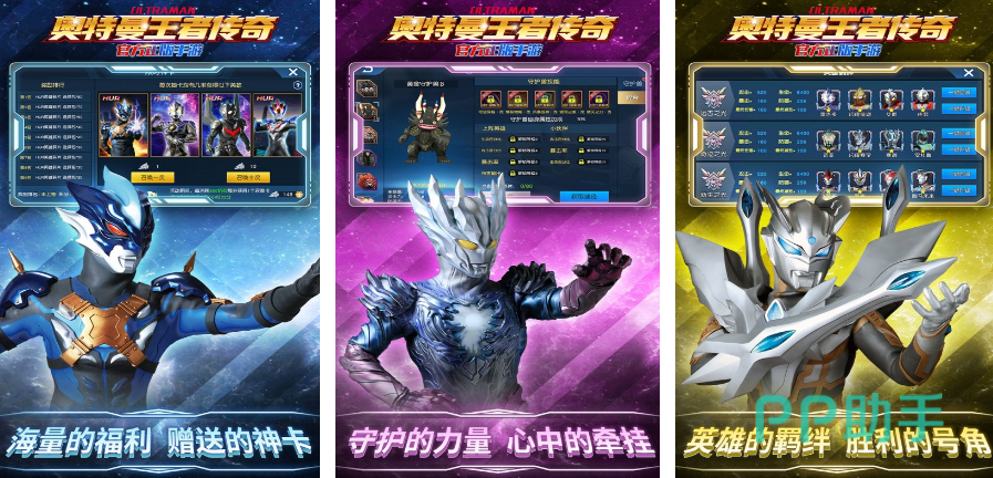 在游戏中,玩家将挑选各式各样的奥特曼与怪兽进行对战,游戏内含海量卡牌,任由玩家挑选搭配各类奥特战士。不同的奥特战士组合,能触发合体技能,每次战役需选定一名战士出征。此外,还拥有多种形态转换,玩家应尽量解锁更多奥特战士卡牌,掌握他们的组合方式,这是赢得游戏的关键所在。