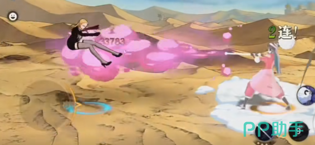 然后二技能的话可以朝着前面释放三道类似于手里剑的道具攻击,击中的话会短时陷入僵硬状态,接着便会朝着前方挥动棒子进行多段连击,最后一击将对方挑飞,所以这招常常用来打出先手,伤害虽然一般般,冷却时间快。