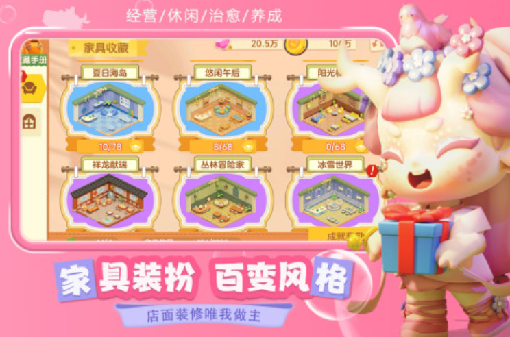 这款游戏促使你来到一个如同桃源仙境般美妙的世界,在这里你可以拥有一家乐园,你可以对世界各地的能人异士进行招募,交代他们去管理经营,从而当一个自在逍遥的甩手掌柜,收入也能源源不断。游戏促使你可任意装修改建这个乐园的所有地方,你定然可以DIY出一个精彩纷呈的乐园,从而吸引客人蜂拥而至。你可以和NPC进行交流,到时候你就可以了解他们背后的故事,加近你们的关系,让你拥有超强烈的代入感。