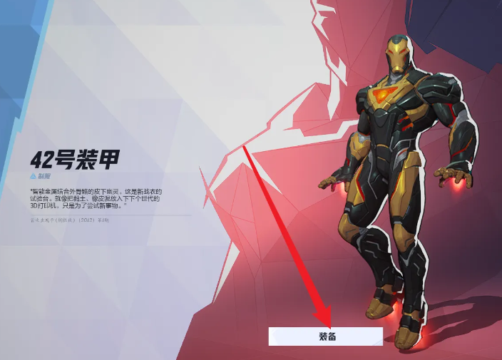 在完成这一个操作步骤之后,还会有一个弹出窗口,这里的选项非常的多,玩家找到装备点击装备之后,马上就能看到钢铁侠的皮肤选择领取之后就能获得,是不是特别的炫酷呢?
