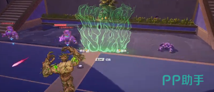 按压shift键就会出现一个金银之墙,攻击范围内的这些敌人全部都会有协同攻击,而且还会携带两层。b马上就会生长出一面甜木之墙,格鲁特在范围内所有的敌人全部都没有办法逃生,另外还有一个大招,大招就是一个超级炸弹,可以把周围的敌人全部都拉到中心。
