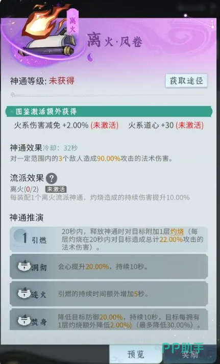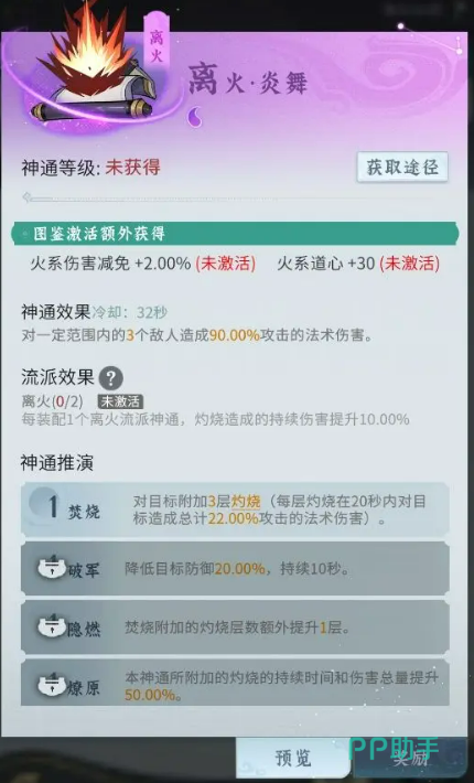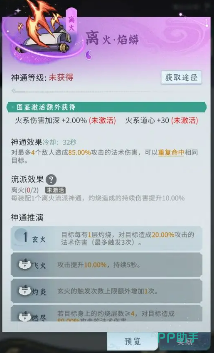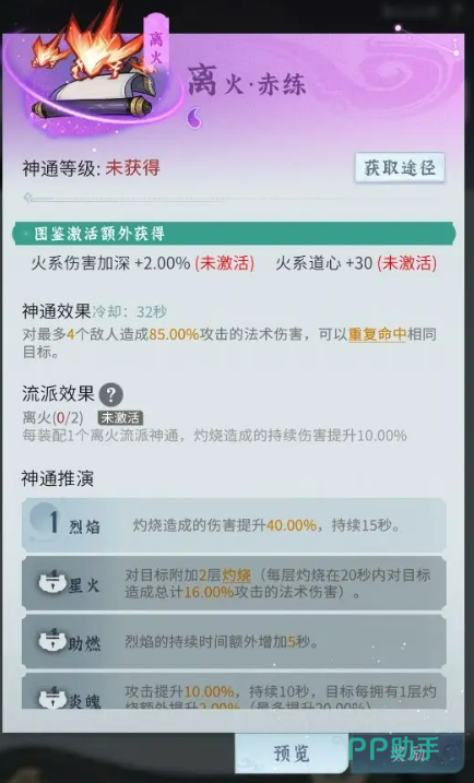 在前期,仙长们获取的神通比较有限,可能无法凑齐完整的流派神通。这里就建议优先使用紫色神通,搭配一些前期过渡流派,依旧可以打出不错的效果。比如火系识破流,核心神通为三味引和青炎闪,这套搭配可以提升会心属性,打出高爆发伤害,非常适合刷怪和打精英怪。此外,火系炎流也是不错的选择,核心神通为阳焰爆和连珠火,通过多层叠加灼烧,持续对敌人造成高额伤害,清理怪群特别高效。