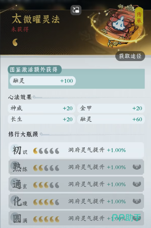 选个靠谱宗门升地位,比如那些有资源、有大佬带飞的门派,千万别错过。同时,职位越高,灵气加成越多。此外,还有一些心法也能对灵气获取产生加成效果,比如“太微曜灵法”,可以让洞府灵气吸收效率更上一层楼,记得优先修炼。