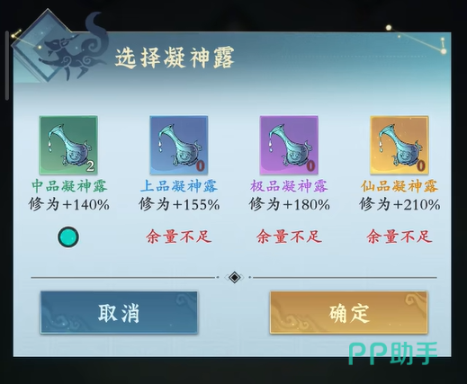 接下来是闭关修炼,它是短时间内让修为爆发性增长的最佳选择,但前提是你得准备好聚灵石。每天闭关的次数越多,聚灵石的消耗也会随之增加,建议把消耗控制在15个聚灵石以内,性价比最高。闭关时的选择也有小技巧,比如凝神露,建议最低用蓝色品质,有条件就用紫色以上,能让闭关修为的收益翻倍。