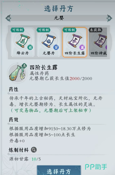 至于源初甘露,这可是炼制长生露、神威露等高级丹药的核心材料,一定别放过。这些丹药不仅没有丹毒,还能带来额外的属性加成,是修为快速成长的好帮手。