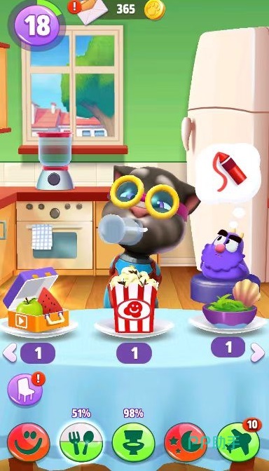 在这个虚拟世界中,设置了非常完善的生活系统,需要做的是定时给汤姆猫进行喂食,带领汤姆猫去洗浴,上厕所,还需要及时补充睡眠,然后陪伴一起玩游戏。玩游戏能够提高心情指数,这样汤姆猫才可以更快乐的成长下去。游戏中同样存在相应的经验值概念,经验值的获取方法也很简单,想要快速升级,那么就定时上线去参加游戏,进行吃饭、上厕所等常规操作,都能够获取经验值。