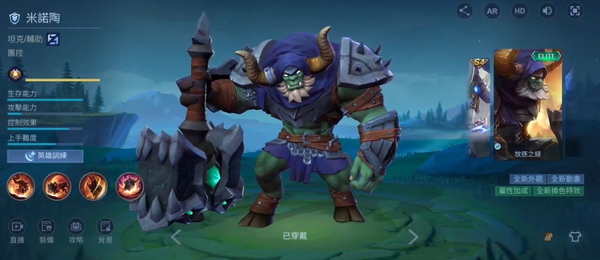 而他的大招则是一种强大的开团或反打技能,愤怒状态下,米诺陶会进入一种强化状态,他的攻击速度、移动速度以及技能效果都会得到提升,大招时的他是在无敌状态之内的,无法被任何控制技能所影响,同时在这个持续12秒的技能期间,他的其他技能也是会有提升影响的。