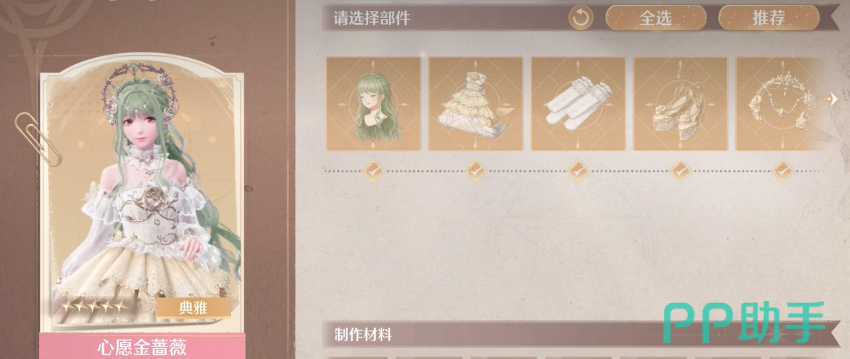想要得到金蔷薇套装也是没有那么简单的,制作过程还是比较复杂,但只要看完上面的内容,材料凑齐也是没那么难的。大家赶快去游戏中尝试下吧,很快就能将这套优雅动人的金蔷薇套装穿在身上啦!